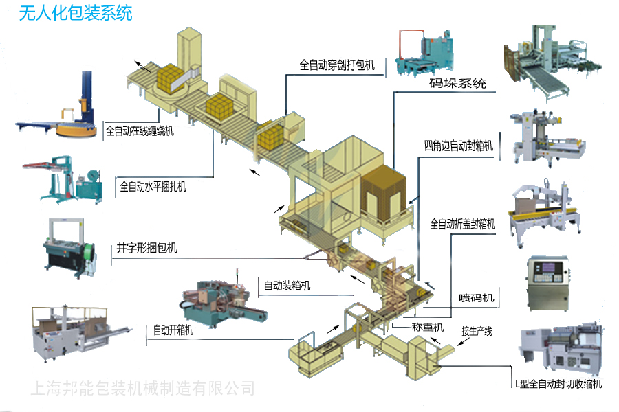 上海邦能包裝機械制造有限公司為中國企業打造全新自動流水線包裝設備,上海邦能成立在上海奉賢區。公司秉持穩健踏實經營理念,不斷提升整體營運效率與服務品質,多年來一直致力于各類自動化打包機、封箱機、纏繞機、真空機、熱縮機等包裝機械的研發、生產及銷售;另一方面,為加速國際化腳步,公司開始自動化流水線的規劃、制造、安裝,完成了生產到專業生產材料和機械的轉變。